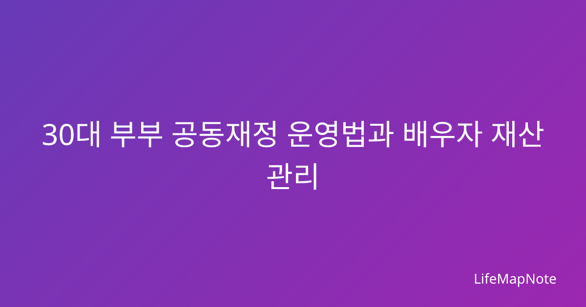 30대 신혼부부 공동재정 운영법과 배우자 재산관리 노하우를 실용적으로 정리했습니다. 3계좌 시스템부터 투자 전략까지 체계적인 돈 관리 가이드를 확인하세요.