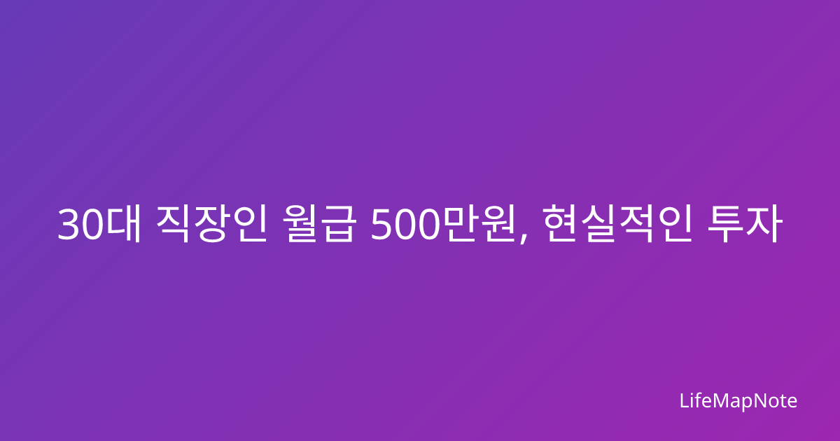 30대 직장인 월급 500만원, 현실적인 투자 비율 가이드 월급 500만원을 받는 30대 직장인으로서 투자를 시작하고 싶지만 어떤 비율로 나누어야 할지 막막하신가요? 생활비는 얼마나 남겨두고, 투자는 어느 정도 해야