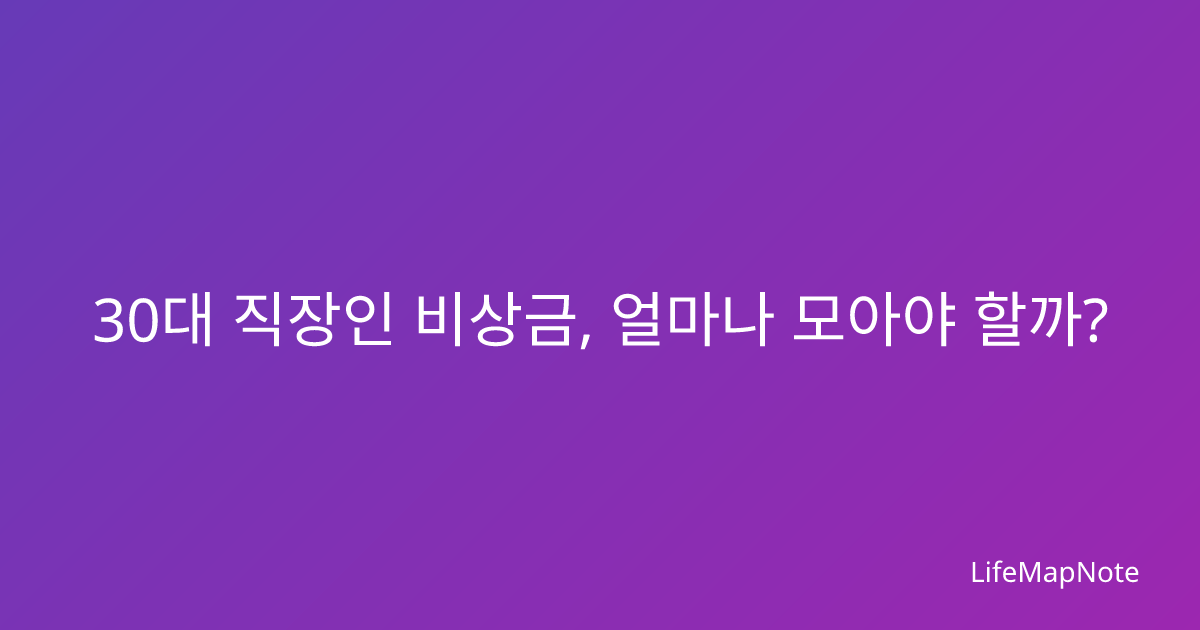 30대 직장인 비상금 적정 규모와 효율적인 적립 방법을 구체적인 계산법과 실전 팁으로 완벽 정리. 월 생활비별 목표 금액까지 한눈에 확인하세요.